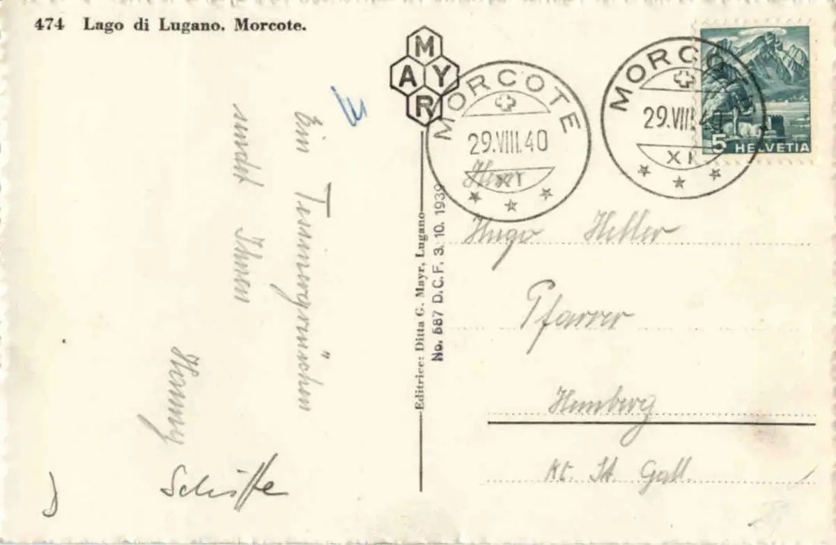 Danke. Alles Bestens. Können Sie mir allenfalls mitteilen, aus welchem Jahr die Postkarte stammt? Besten Dank.