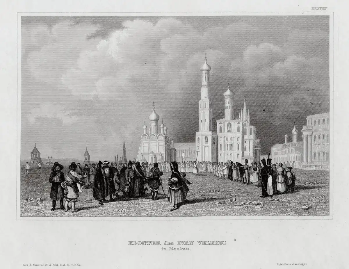Moskau, Kloster des Ivan Velekoi, echter Stahlstich um 1850