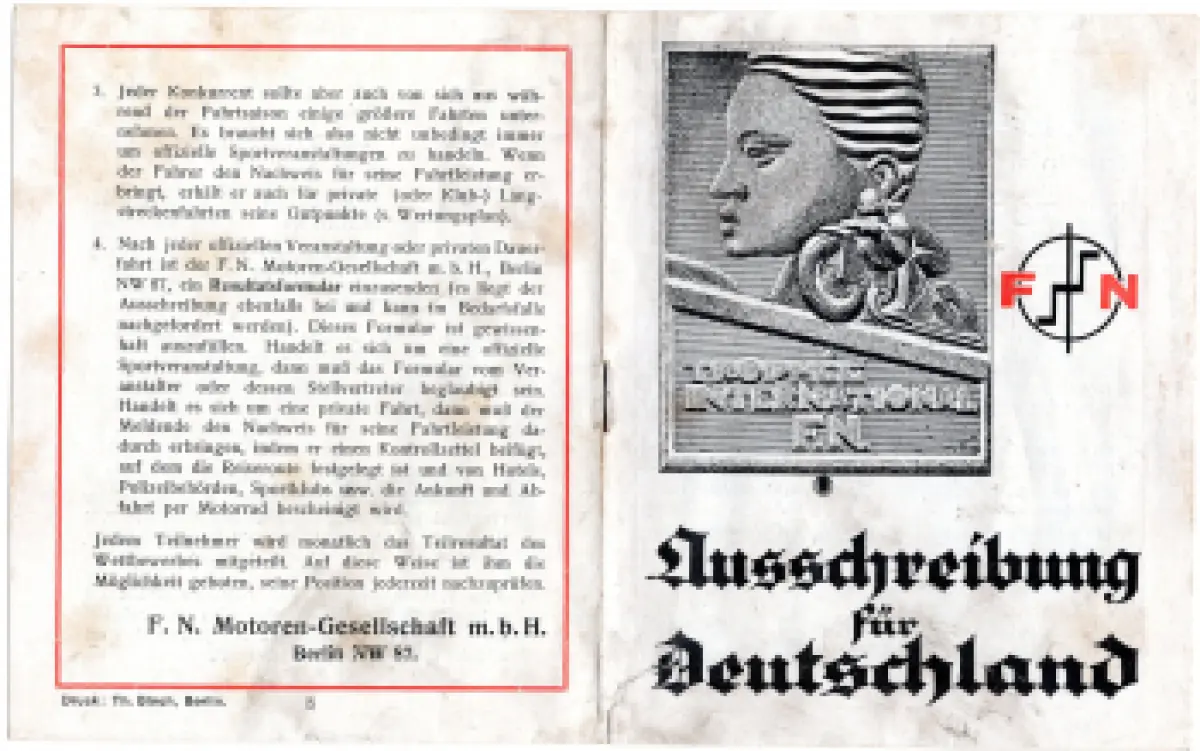Motorrad Trophee International F.N. Motoren Gesellschaft Ausschreibung Heft 8 Seiten um 1920