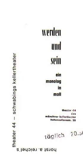 Titel: Programmheft zu: Die Polizei. Ein Drama aus der Sphäre der Gendarmen. Deutsch von Heinrich Kunstmann. Regie: Ursula Herking. Bühnenbild: Walter Theil. Darsteller: Horst A. Reichel, Winfried Groth, Axel Scholtz, Ina Schmucker, Fred Hämmerlein, Walter Theil. Aufführung in: Theater 44 - Schwabings Kellertheater, München. Programmheft 1 / 12 / 1962. Herausgeber: theater 44, Horst A. Reichel