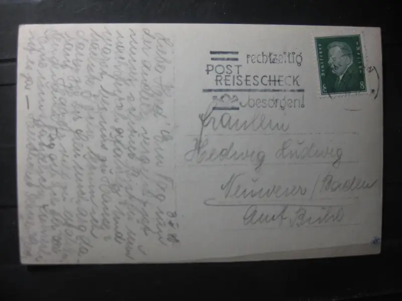 ca. 1930; Unschärfen, Spiegelungen, Verbiegungen sind allein durch das abfotografieren bedingt; Karte ist beidseitig abgebildet, Erhalt siehe Scan; ist das Foto qualitativ nicht aussagekräftig genug, kann es besseres Foto angefordert werden. Rückgabe bei Karten ist generell ausgeschlossen.