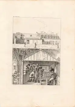 München die Arch-Noe original Kupferstich mit Kegelbahn um 1810