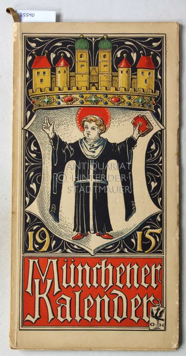 OBroschur, kart., Schlaufe zum Aufhängen oben. Mehrfarbiger Druck auf Büttenpapier. Kanten etwas berieben/bestoßen, Papier leicht fleckig, kleine Fehlstelle am Rücken unten; Eintrag auf Rücken, sonst ohne Eintragungen; gutes Exemplar