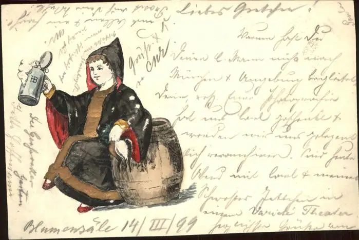 Muenchner Kindl Bierfass Muenchen postalisch gelaufen 1899 Praegedruck Erhaltung mit Maengel Praegedruck Paoletti