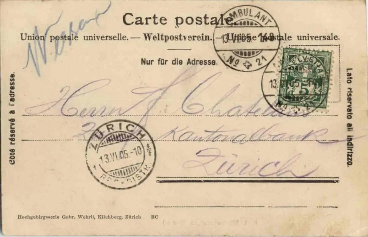 Danke. Alles Bestens. Können Sie mir allenfalls mitteilen, aus welchem Jahr die Postkarte stammt? Besten Dank.