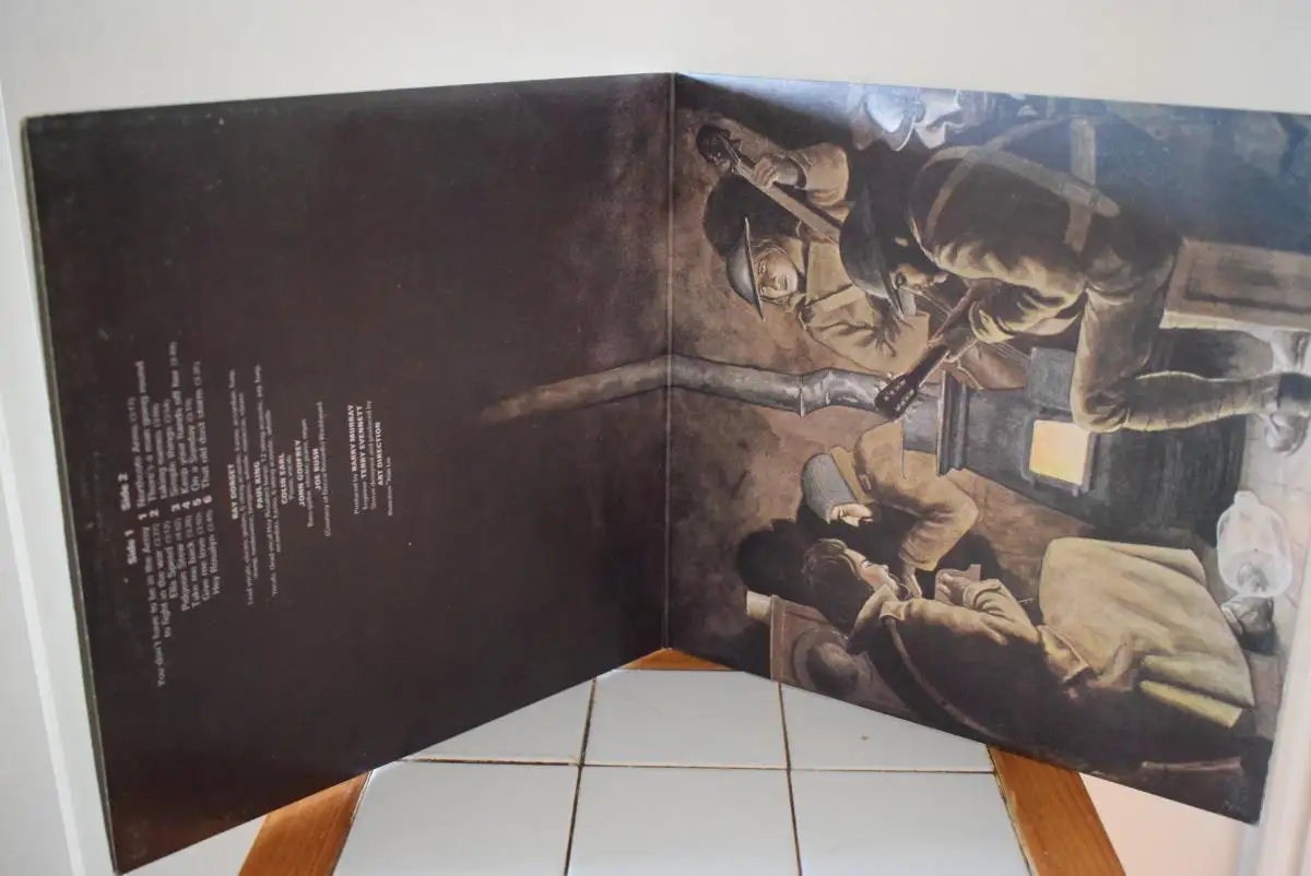 Cover mit etwas deutlicheren , umlaufenden Gebrauchspuren an Ecken und Kanten und leichten Abschürfungen auf den Flächen , LP sehr gut , knapp an NM vorbei , spielt erstklassig .