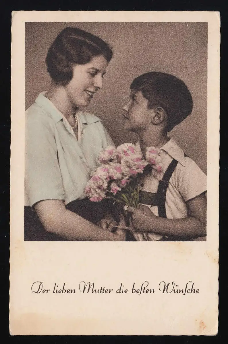 Mutter + Sohn bringt Blumen, lieben Mutter beste Wünsche, Frankfurt 17.5.1941