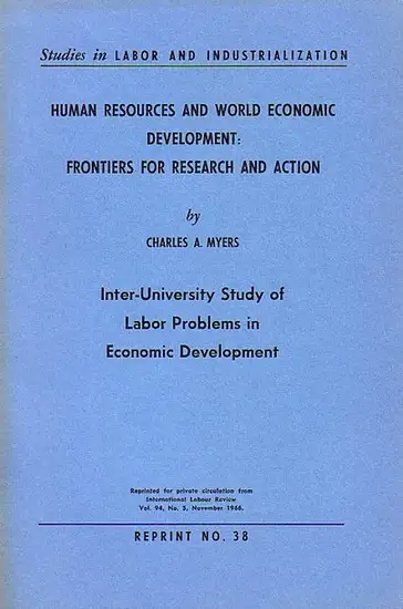 Myers, Charles A: Human Resources and World Economic Development. Frontiers for Research and Action. Inter-University Study of Labor Problems in Economic Development. Reprinted for private circulation from The South Atlantic Quarterly Vol. 94, No. 5, Nove