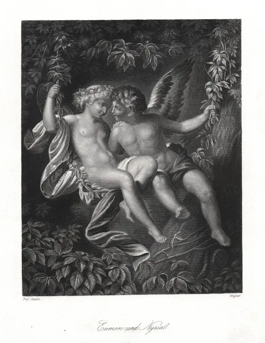 Mythologie. Eumon und Nysial. Originaler Stahlstich, Wagner um 1850