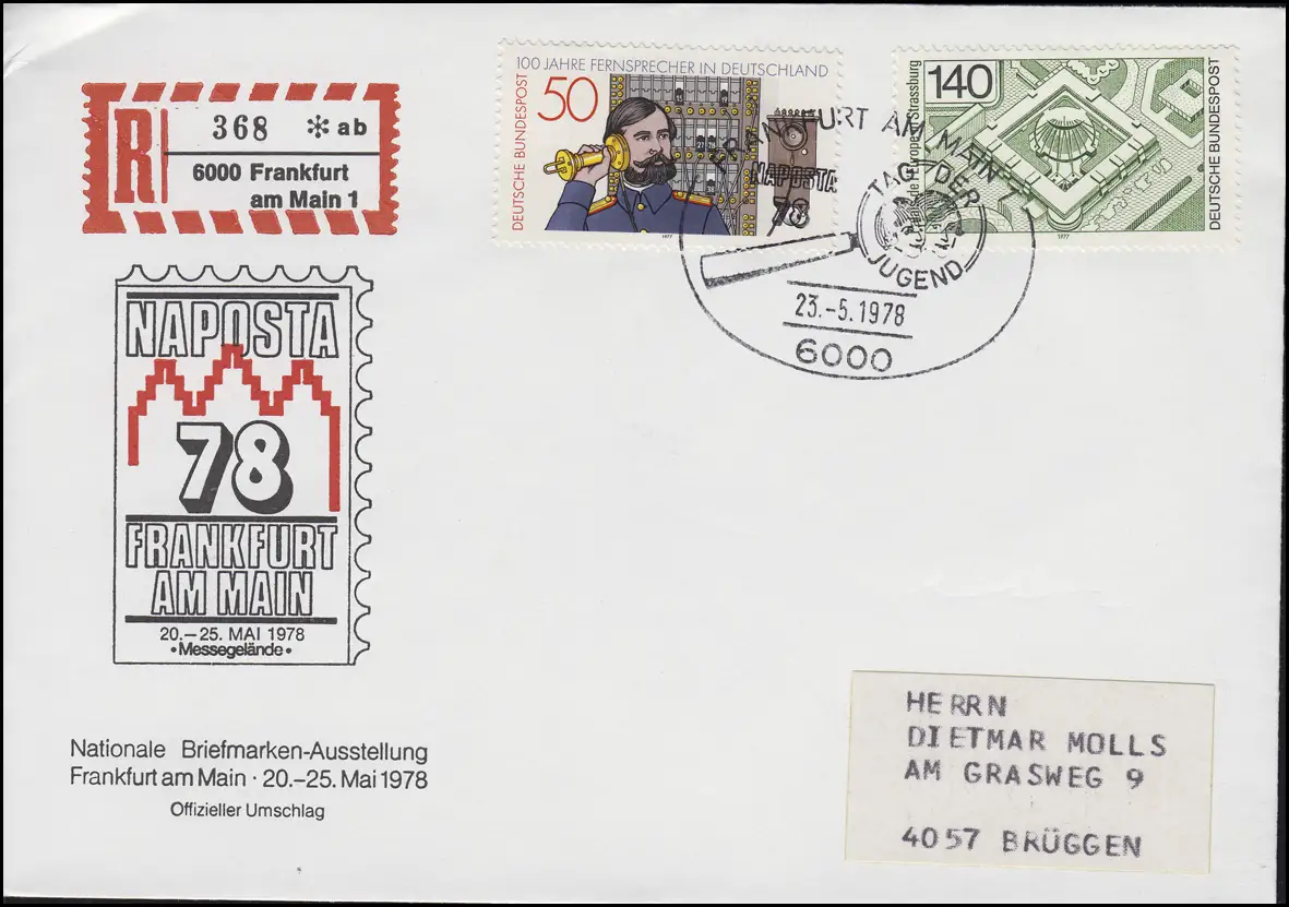 NAPOSTA 1978 Schmuck-Brief gedruckter R-Zettel MiF 921+947 SSt FRANKFURT 23.5.78