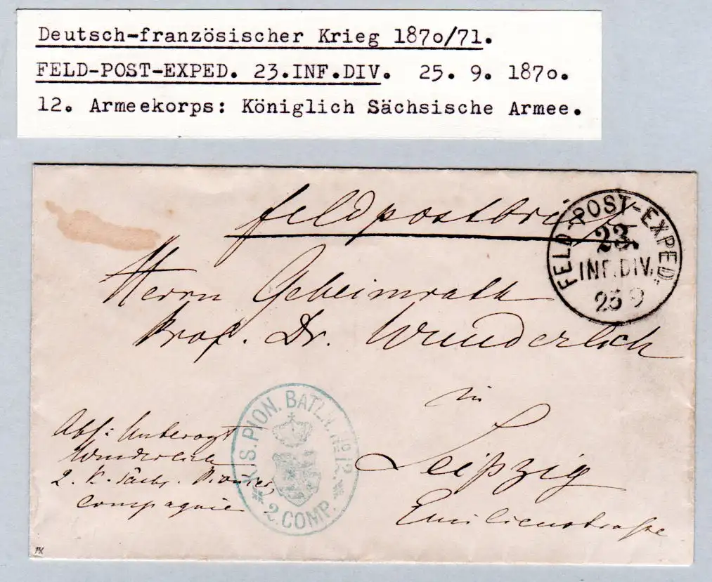NDP 1870, K1 FELD-POST-EXPED. 23. INF.DIV. auf Brief n. Sachsen