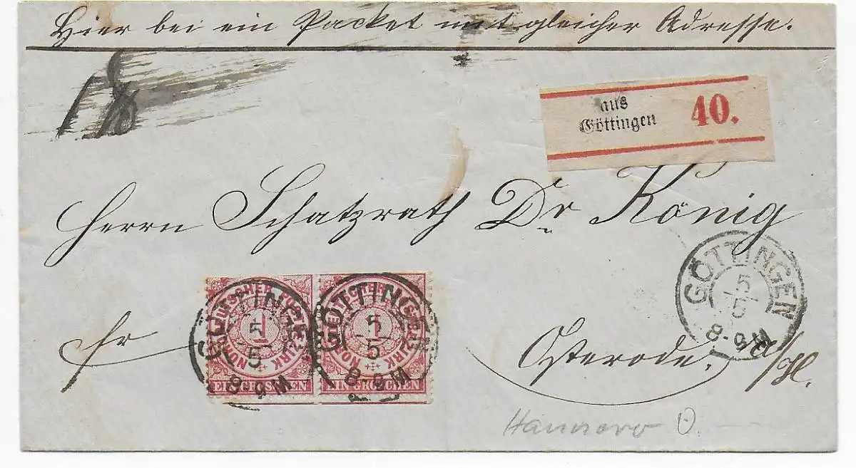 NDP: Einschreiben Göttingen Paketbegleit-Brief, Hannover Stempel