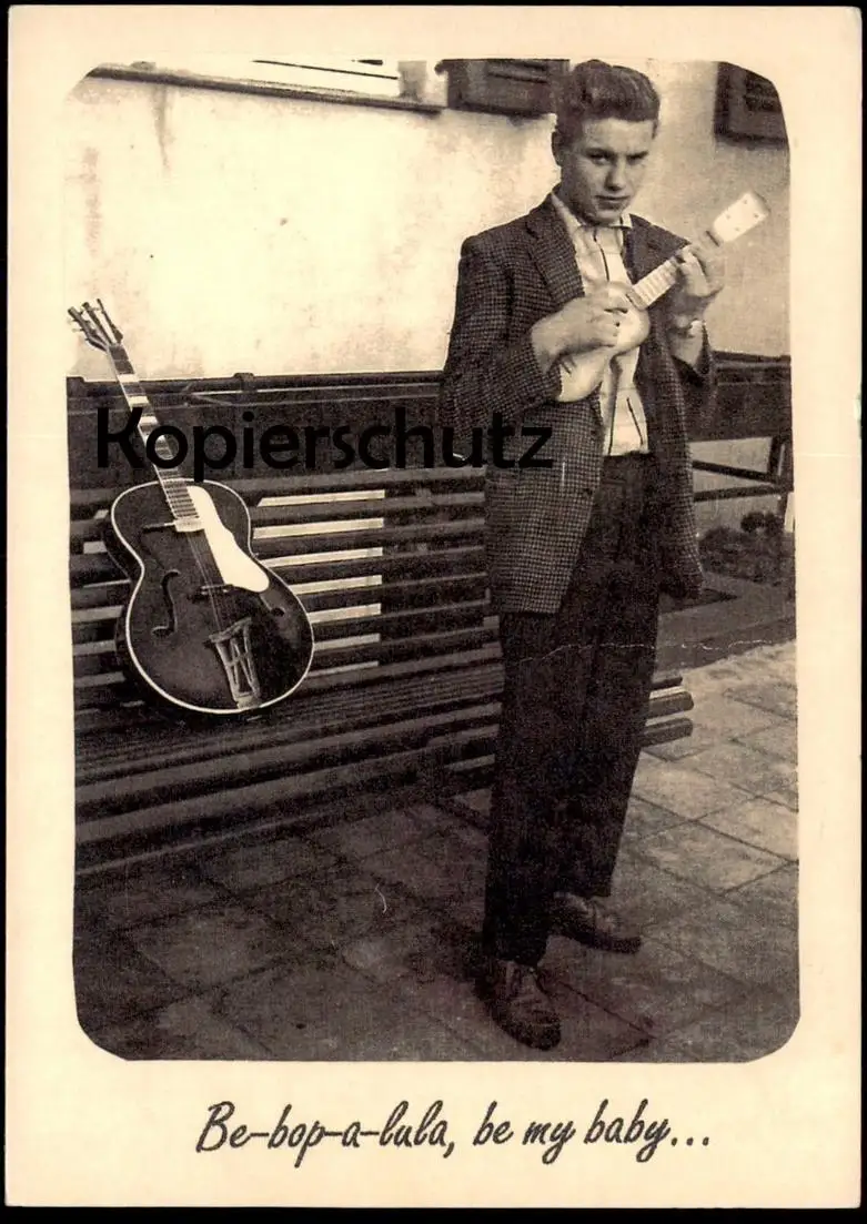 NEUERE POSTKARTE MIT ALTEM MOTIV BE BOP A LULA BE MY BABY GITARRE Gene Vincent guitar music cpa postcard Ansichtskarte