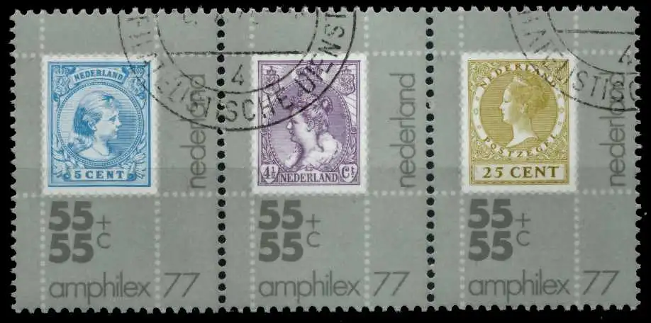 3er Streifen aus der Ausgabe Briefmarkenausstellung AMPHILEX 1976 Amsterdam (MichelNr.: 1083, 1084, 1085)