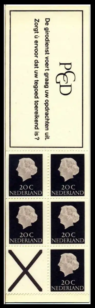 Markenheftchen Nr. 06x, Deckel grau, Papier x, Text: De girodienst.... (MichelNr.: MH06, 622YxDl, 622YxDr)