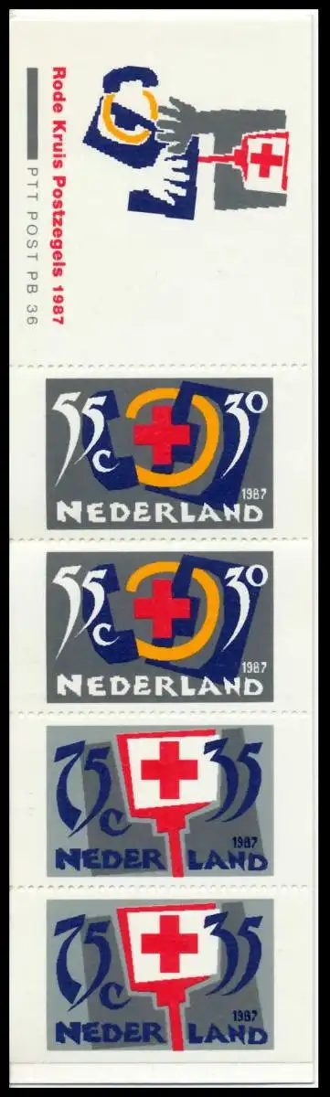 Markenheftchen Nr. 37 rotes Kreuz, mit Heftchenblatt PB 36, Deckel rot (MichelNr.: MH37, 1323C, 1325C, 1325D)