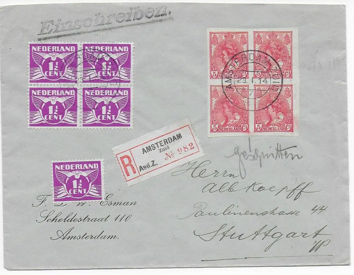 NL: Einschreiben Amsterdam 1914, 5ct im VB ungezähnt, selten