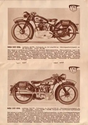 NSU Motorrad Programm 1938