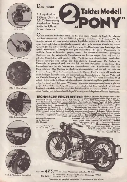 NSU Pony 200 Prospekt 1935
