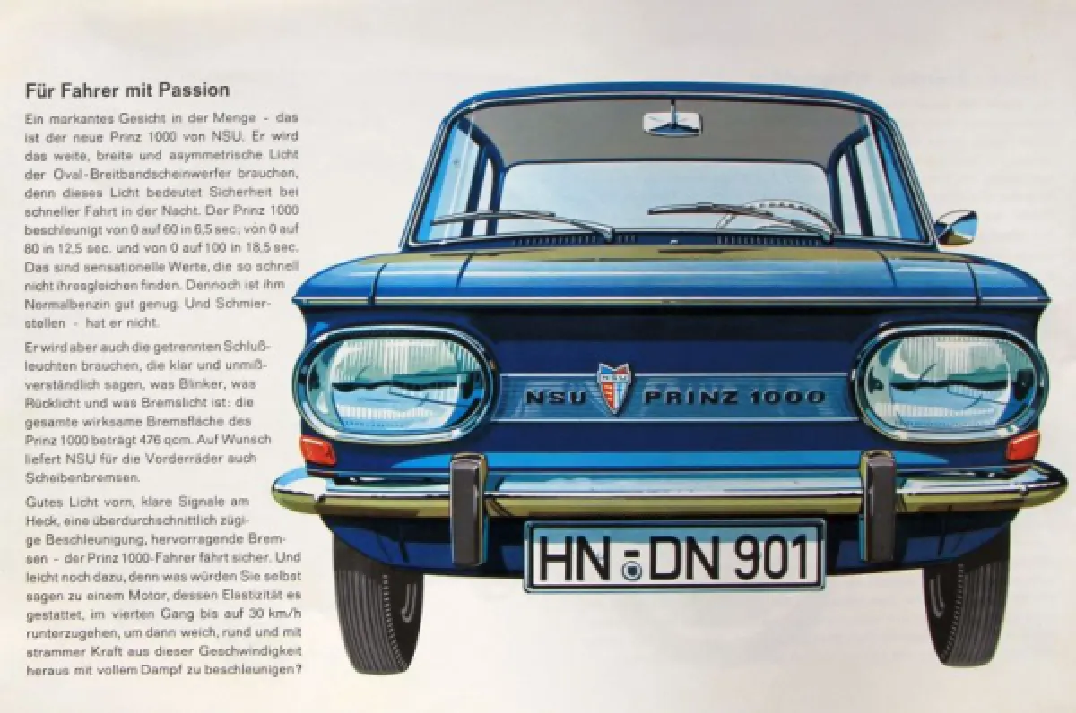 NSU Prinz 1000 Modellprogramm 1964 Automobilprospekt (10176)