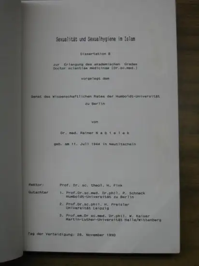Nabielek, Rainer: Sexualität und Sexualhygiene im Islam. Dissertation B.