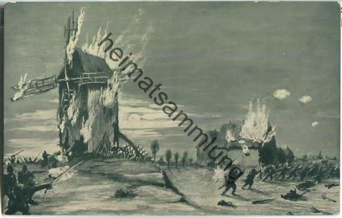 Nächtlicher Überfall eines russischen Bataillons durch deutsche Infanterie - Windmühle - Kunstdruckerei Gutenberg Nr. 37