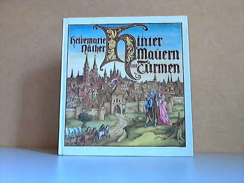 Hinter Mauern und Türmen; EIn Kultbild aus der Zeit der Gotik; Näther, Heidemarie; Kinderbuch; Geschichten; Fachwerkbauten; Kirchen; Rathaus; Kaufleute; Handwerker; Bauern; Alltag einer Stadt; Leben und Gewohnheiten; Jahrmarkt; Ritter; Bunte Bilder aus dem 15. Jahrhundert