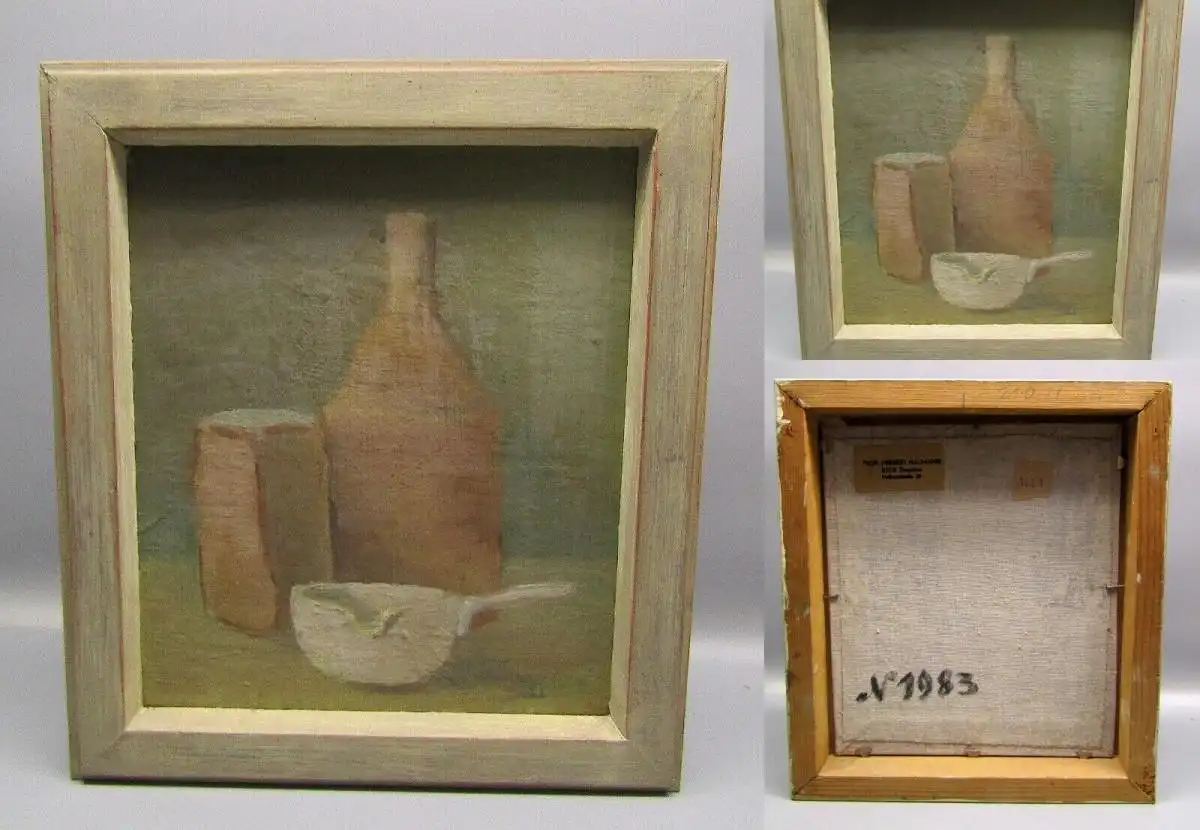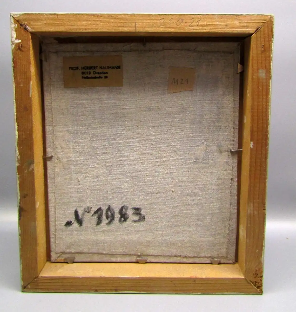 Bildformat: ca. 21,5 cm x 18 cm; Rahmenformat: ca. 27 cm x 23,5 cm Zustand: Gesamt schöner Zustand Inhalt: Eines seiner sehr beliebten Stilleben. Herbert Naumann geb. 1918 Dresden; gest. 2003 in Dresden, war ein deutscher Kunsthandwerker, Bildhauer, Keramiker und Kunstmaler und wohnte in Dresden. Naumann studierte von 1948–53 bei Rudolf Kaiser an der Hochschule für Bildende Künste in Dresden. 1954 wurde er in dieser Institution Assistent. Ab 1957 hatte er eine Dozentenstelle inne. 1967–83 Professor für keramische Plastik.