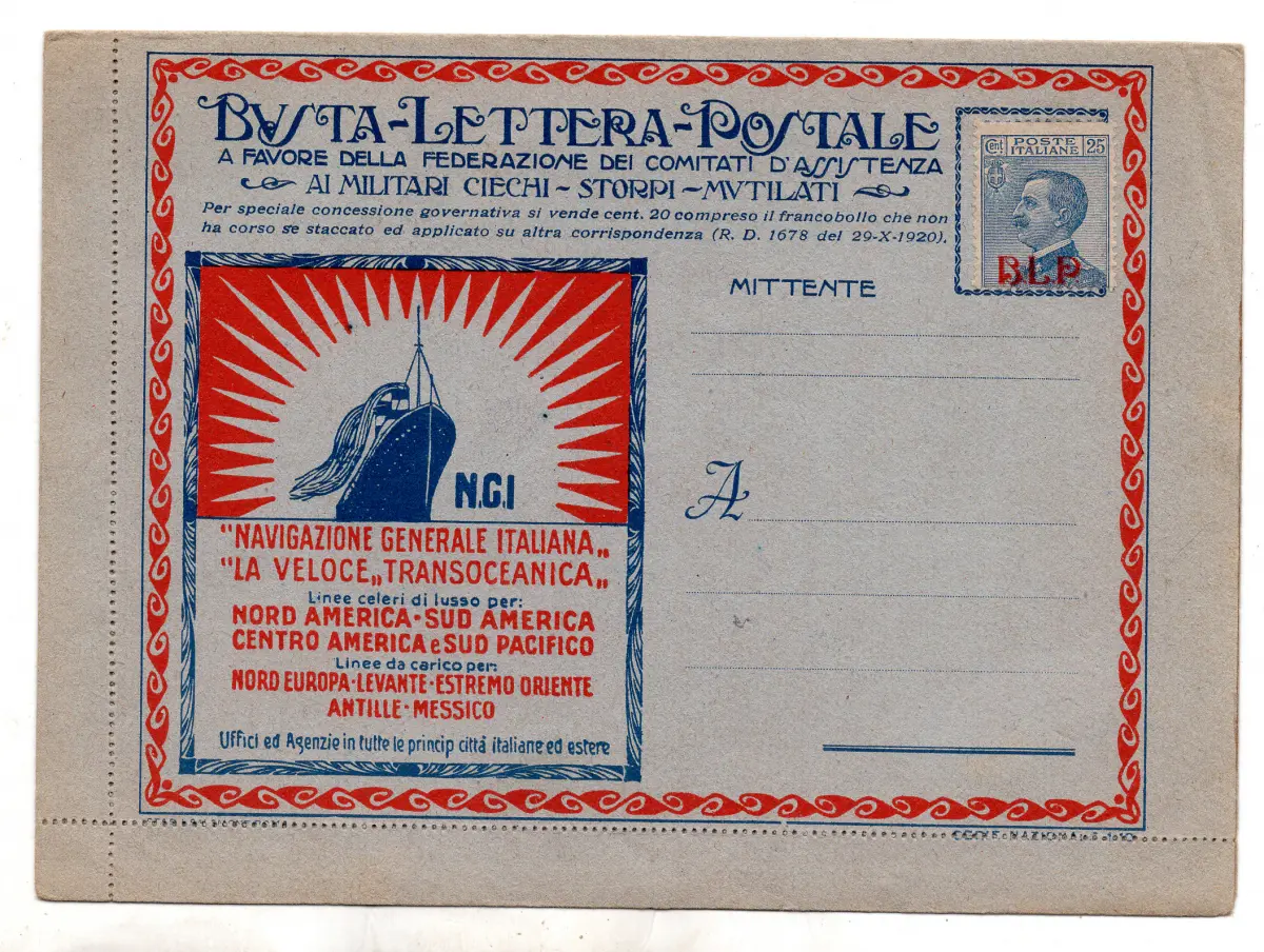 Nazionale 1-10 Navazione Italiana - B.L.P (blauer Karton) frankiert mit Cent. 25 Nr. 3 nicht gereist, ohne Innenblatt - Qualität: Gut Cod.193/182
