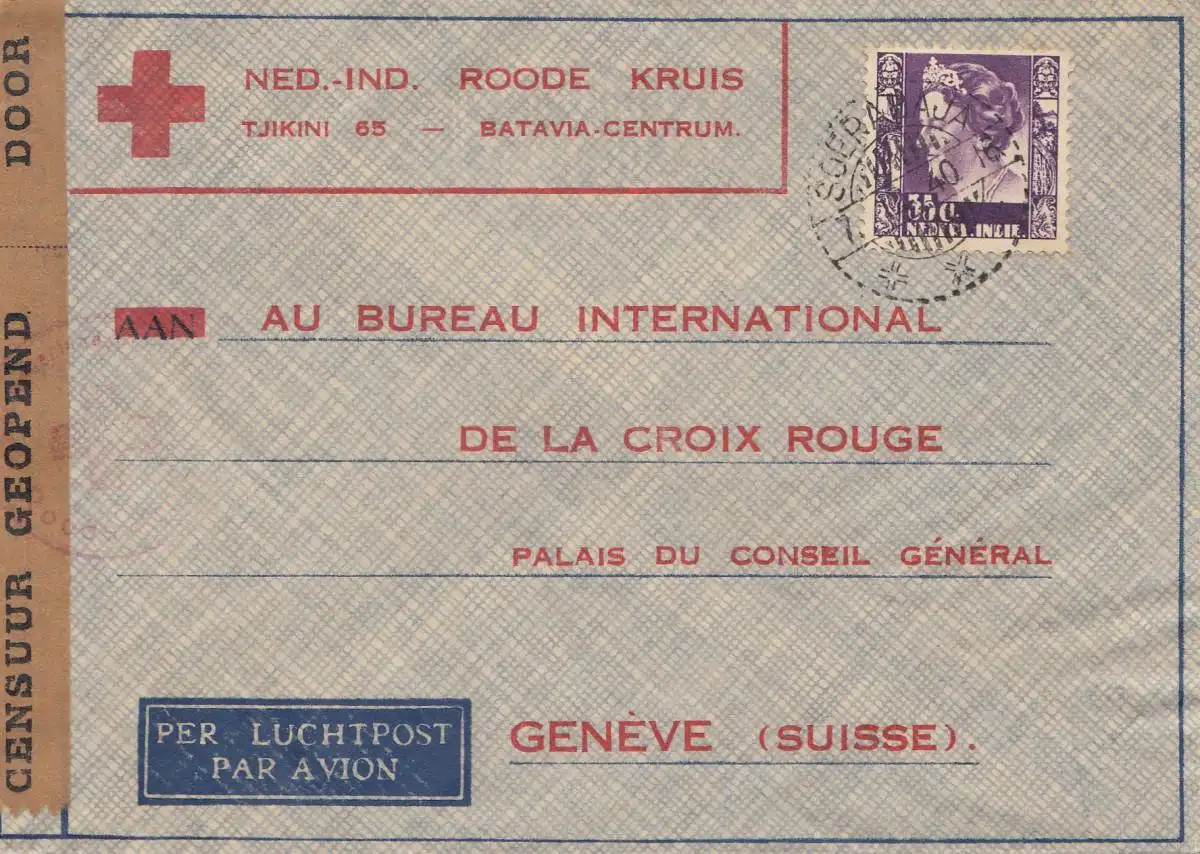 Ned. Indie 1940: air mail Red Cross Batavia to Genf/Switzerland, censor