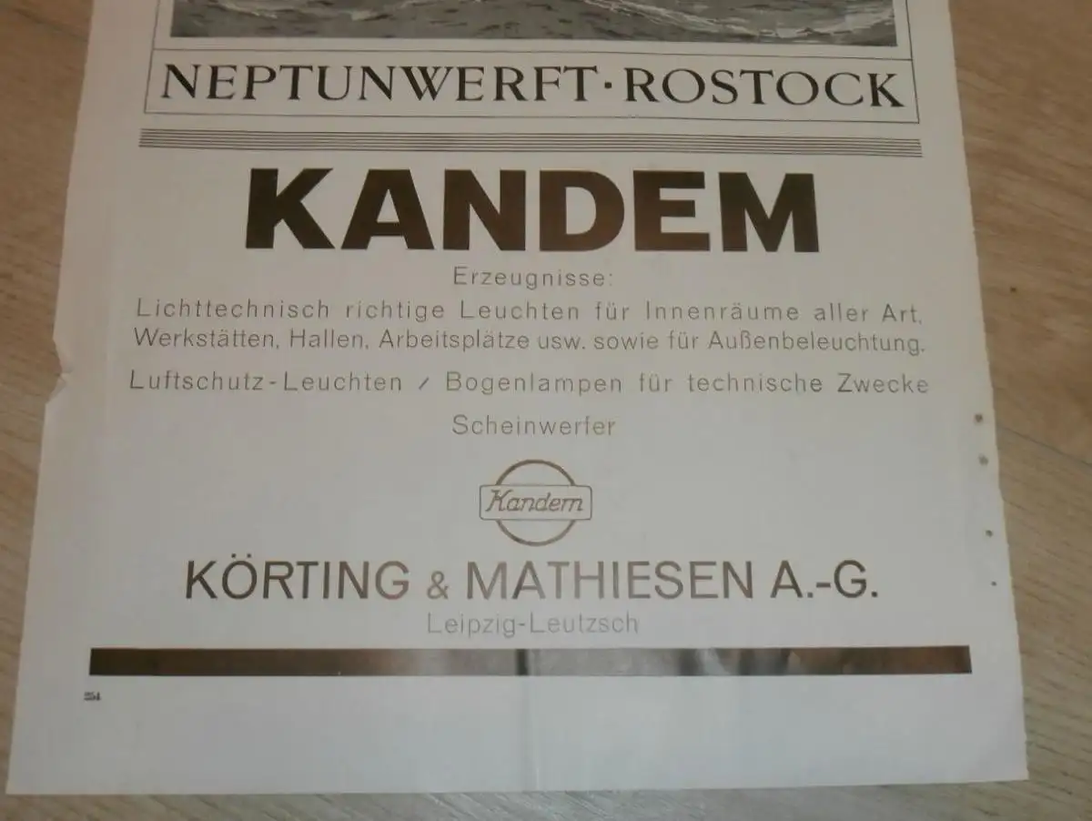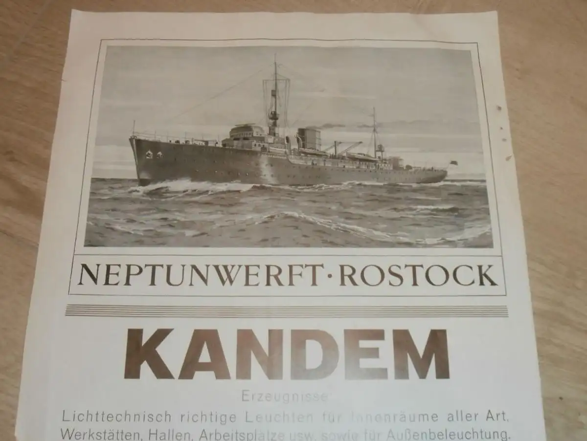 Neptunwerft Rostock , Plakat , Flugzeuge , Friedrichshafen, Kandem , Körting , Luftschiff - Hallen , alte Reklame !!