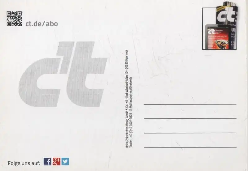 Ich hatte die Rechnung sofort als Vorkasse bezahlt, aber keine Zusendung der Karte erhalten. Trotz Nachfrage keine Rückmeldung bzw. Erklärung. Da es sich zum Glück nur um 1,70 € handelt, ist die Sache für mich erledigt, ärgerlich, aber zu verkraften. Mit den drei anderen Karten, die ich bestellt hatte, hat alles wunderbar geklappt.
