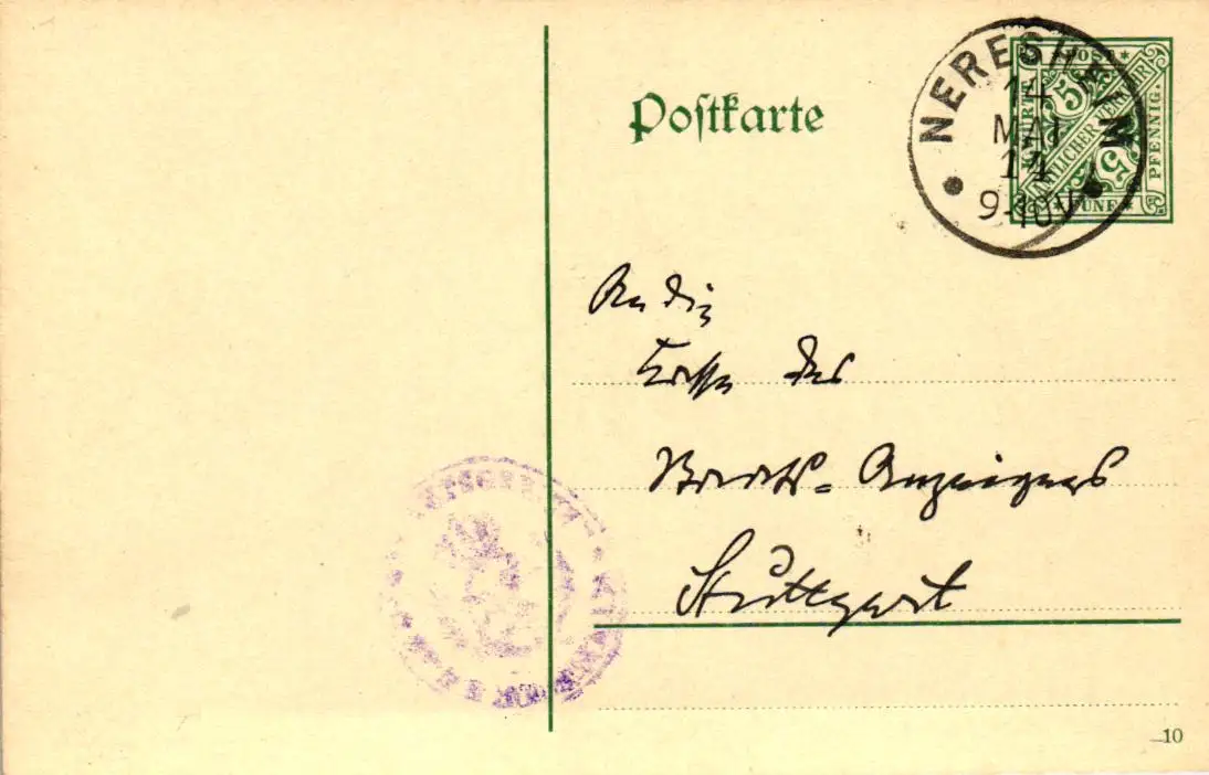 Neresheim Postkarte 5 Pf grün (10) MiNr. DP 43 Ia