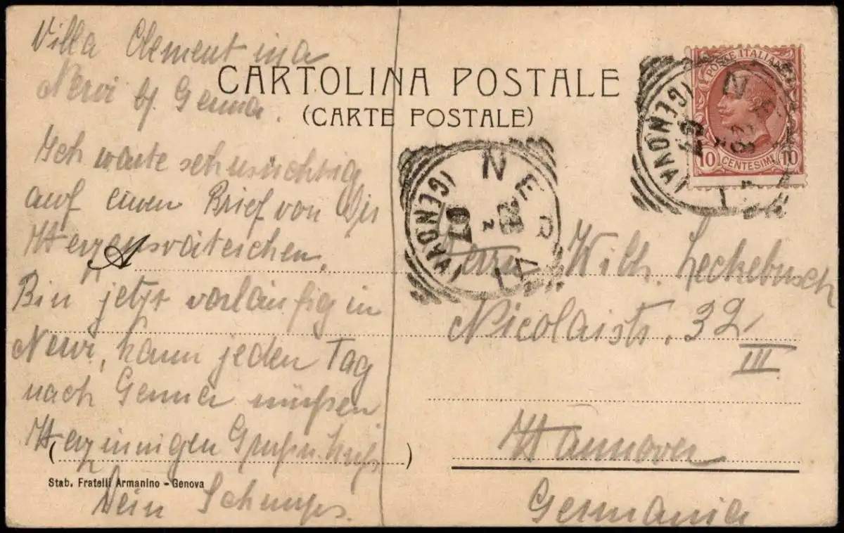 Nervi-Genua Genova (Zena) Viale Vittorio Emanuele UN SALUTO DA NERVI 1907