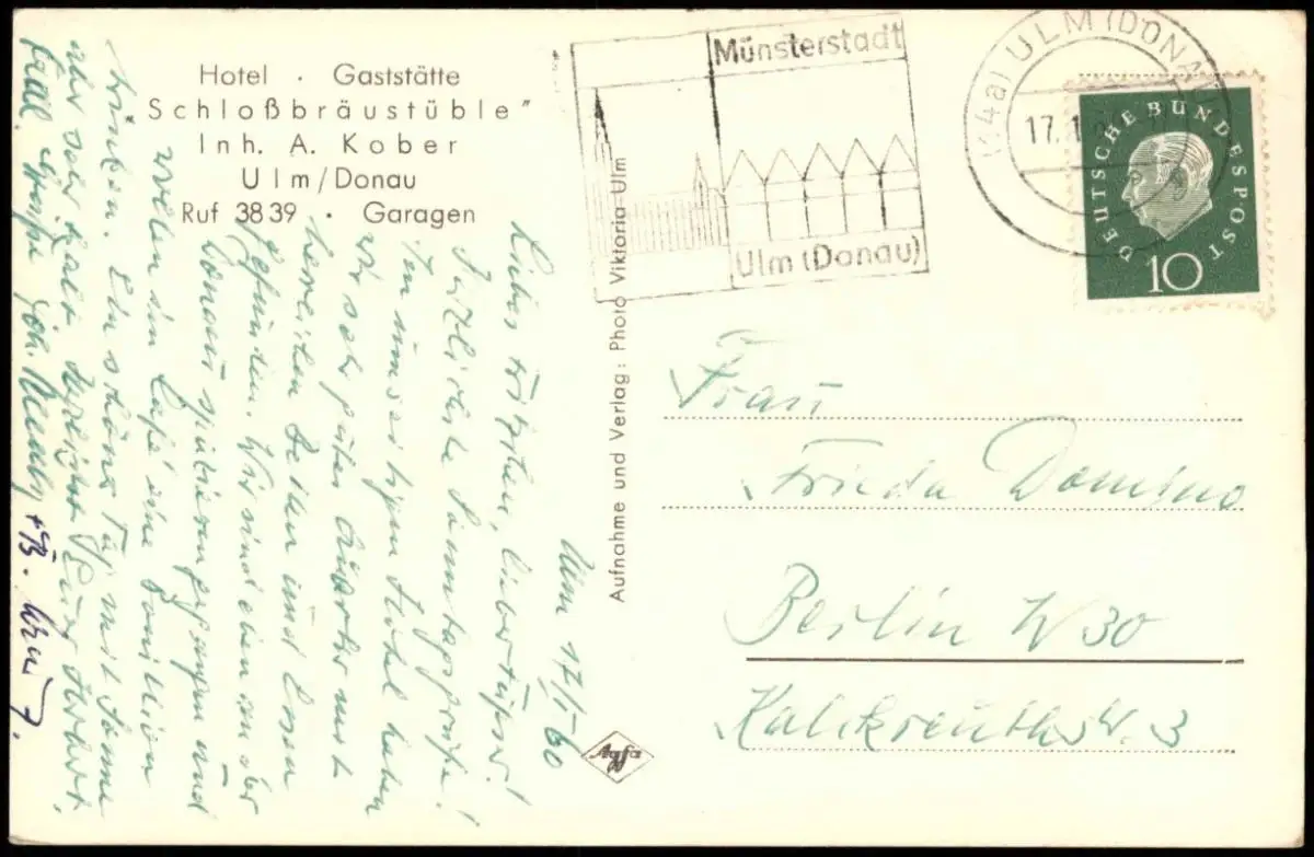 Neu-Ulm Hotel Gaststätte Schlossbräustüble in Ulm a.d. Donau 1960