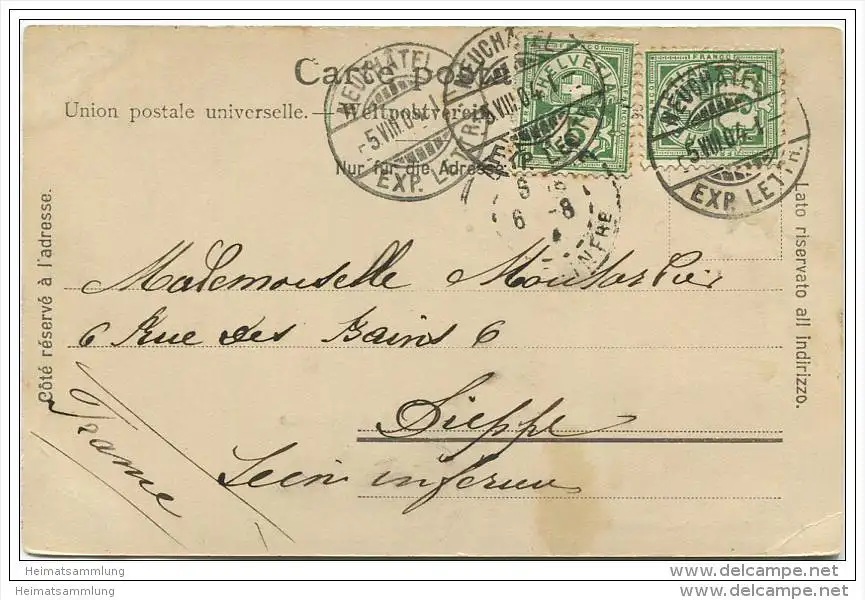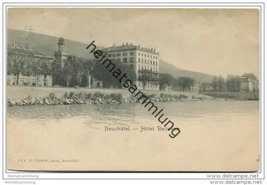 Neuchatel - Hotel Bellevue - Verlag E. Chiffelle Neuchatel - Eckknick unten links (E6116) gel. 1904