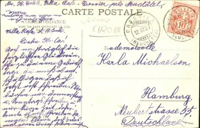 Neuchatel NE Neuchatel [Stempelabschlag] Pension Villa Rafa x Neuchatel postalisch gelaufen 1907 Alte Ansichtskarte Postkarte