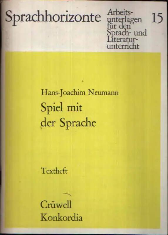 Neumann, Hans-Joachim; Spiel mit der Sprache; Textheft; Arbeitsunterlagen; Sprach- und Literaturunterricht; Sprachwissenschaften; Literaturwissenschaften; deutsche Sprache