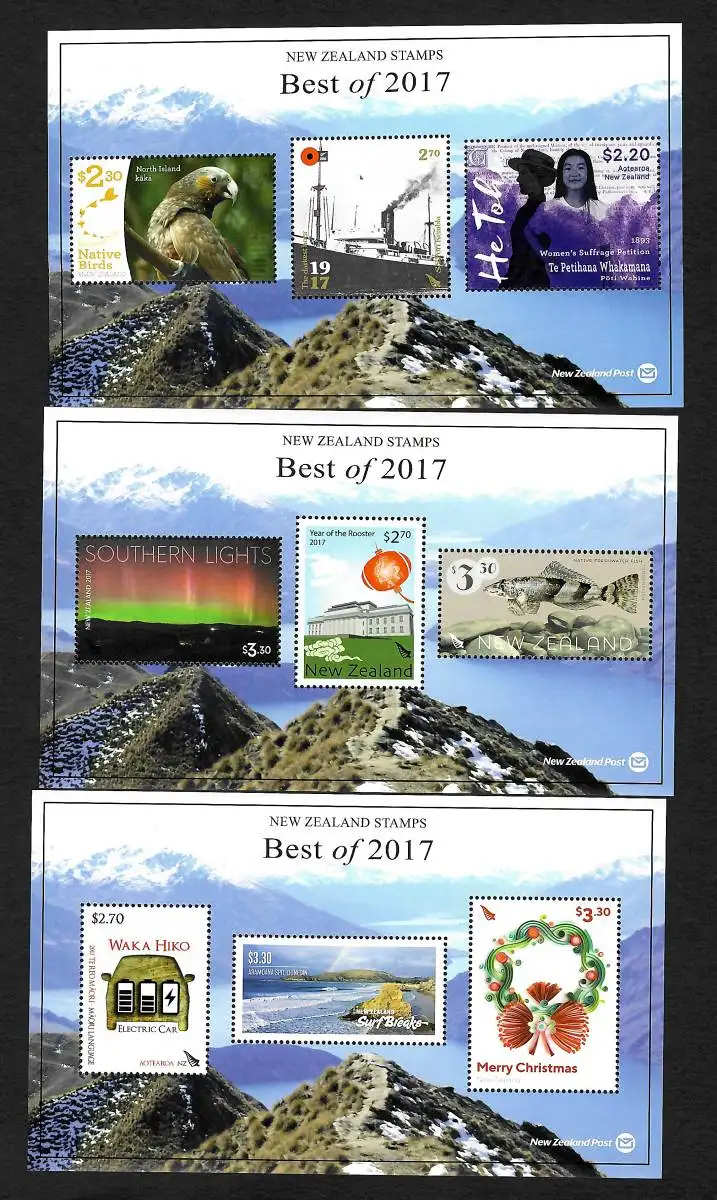 Neuseeland: Best Stamps of 2017, 3x blocks, postfrisch