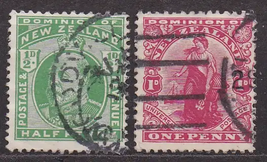 Neuseeland, Mi-Nr. 122 + 123 gest., König Edward VII + "Penny Universal"