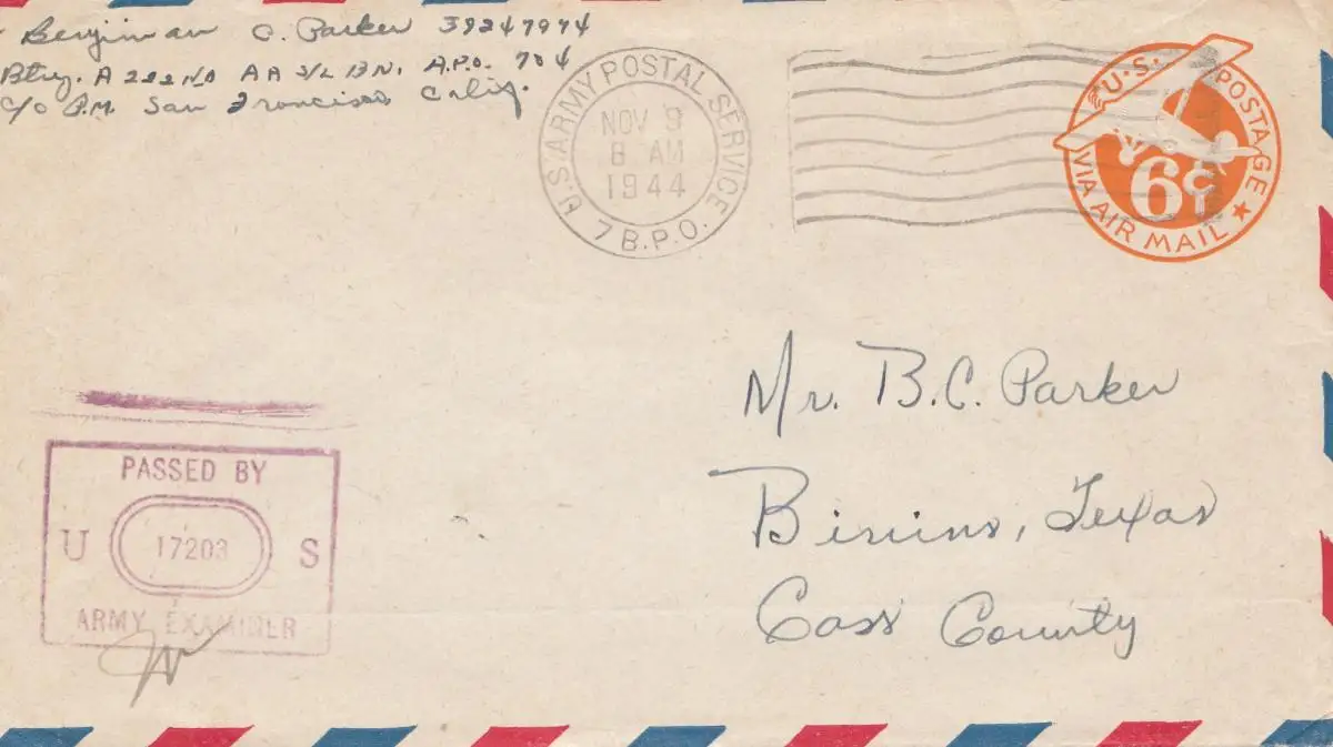 New Guinea 1944: US Army Postal Service, censor to Cass County