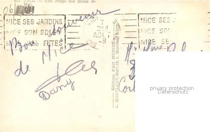 Nice_Alpes_Maritimes Plage de bains de mer Côte d'Azur Nice_Alpes_Maritimes postalisch gelaufen 1948 Erhaltung siehe scans [FriedD77] Frierer