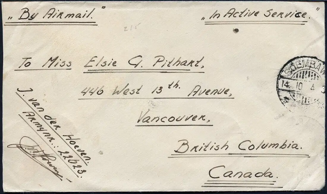 Niederländisch-Indien 1946 Feldpostbrief Luftpost Soembawa Kanada / 811