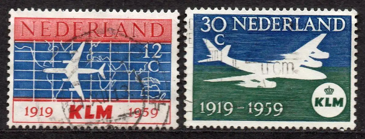 Niederlande, Mi-Nr. 737 - 738 gest., kompl., 40 Jahre Fluggesellschaft KLM