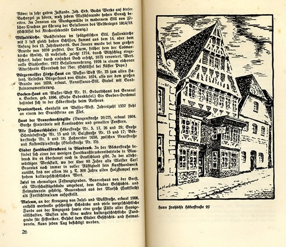 NIEDERSACHSEN ELBE ALTES LAND STADT UND HEIMATGESCHICHTE Stade Umgebung und das Unterelbe Gebiet Geschichte Wirtschaft alter Reiseführer mit Branchenverzeichnis regionalhistorische Buchausgabe von 1928 mit GESAMT 64 Seiten druckgraphischen Abbildungen Lage und Bedeutung von Stadt Rundgang durch die Stadt Bauwerke und Sehenswürdigkeiten die Vorstädte Ausflüge in die Umgebung der Stadt Reise udn Verkehrsverbindungen Jugendherbergen Altes Land und Unterelbegebiet Buxtehude Rehdingen und Haddeln außerdem Verzeichnis empfehlenswerter Geschäfte in Stade Beiliegender Stadtplan ist nich mehr vorhanden \nGuter Zustand Format 20cm x 13cm.\n Die ausgewählten Bild Beispiele haben eine unterschiedliche Auflösung was die Wiedergabe durch den Scan beeinträchtigen kann. Bücher Papier und Dokumente deutscher Zeitgeschichte 1800-1960 Ankauf und Verkauf Besuchen Sie unser Ladengeschäft in Darmstadt Antiquariat an der Linie 3 Inhaber Stefan Jähnig Reiseführer Orts und Landeskunde Landkarten Regionalgeschichte Wirtschaft Industrie und Technik Landwirtschaft und Gartenbau Geschichte Historika Kolonien und Seefahrt Weltkrieg und Militaria Presse Zeitungen und Zeitschriften Buchkunst Exlibri Literatur und Kunstgeschichte Mode Design Werbeschriften Kataloge und Prospekte Firmenrechnung Dokumente Urkunden Oblaten Glanzbilder Reklamemarken und Vignetten Postkarten Ansichtskarten historische Photographie Sammelbilder moderne Literatur und Gegenwart Romane Erzählungen Publizistik deutsche und internationale Autoren Die Versandkosten richten sich nach den aktuellen Tarifen der Deutschen Post AG. Für ihre Anfragen und Wünsche habe ich ein offenes Ohr! Weitere Angebote finden Sie in meinem Ebay Shop Nachlass-Bearbeitung Ankauf von Büchern und Sammlungen