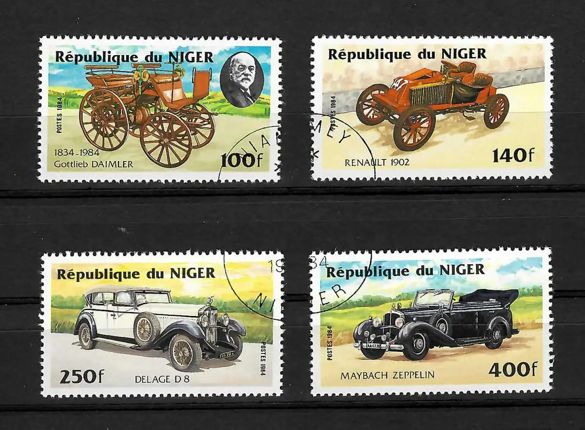 Niger: 4x historische Autos: Maybach, Delage, Renault, Daimler, #892-895