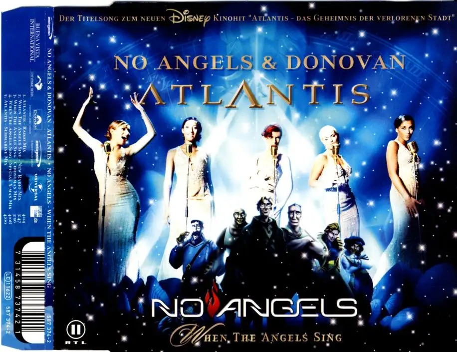 CD Single No Angels - Atlantis / When The Angels Sing, Zustand CD VG Hülle VG+; Made in Europe 2001 Zeitgeist 587 374-2, Tracks No Angels & Donovan - Atlantis [Radio Mix] 4:14, When The Angels Sing [New Radio Mix] 3:47, When The Angels Sing [Christmas Mix] 3:56, When The Angels Sing [Special X-Mas Mix] 4:08, No Angels & Donovan - Atlantis [Submarine Mix] 4:00