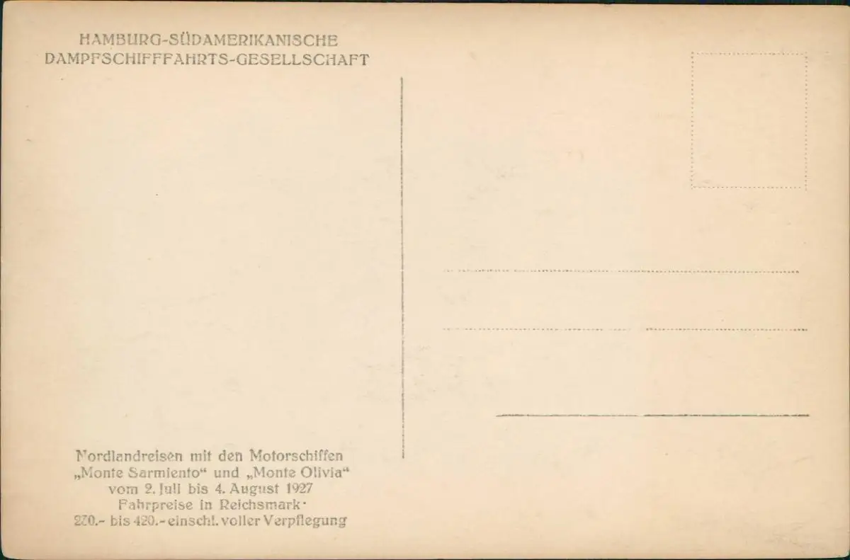 Norge Norwegen HAMBURG-SÜDAMERIKANISCH Schiffe Dampfer Steamer 1927