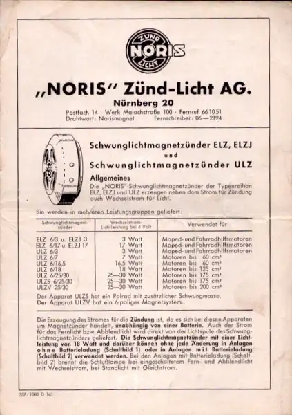 Noris Schwunglichtmagnetzünder ELZ ELZJ ULZ 3.1957