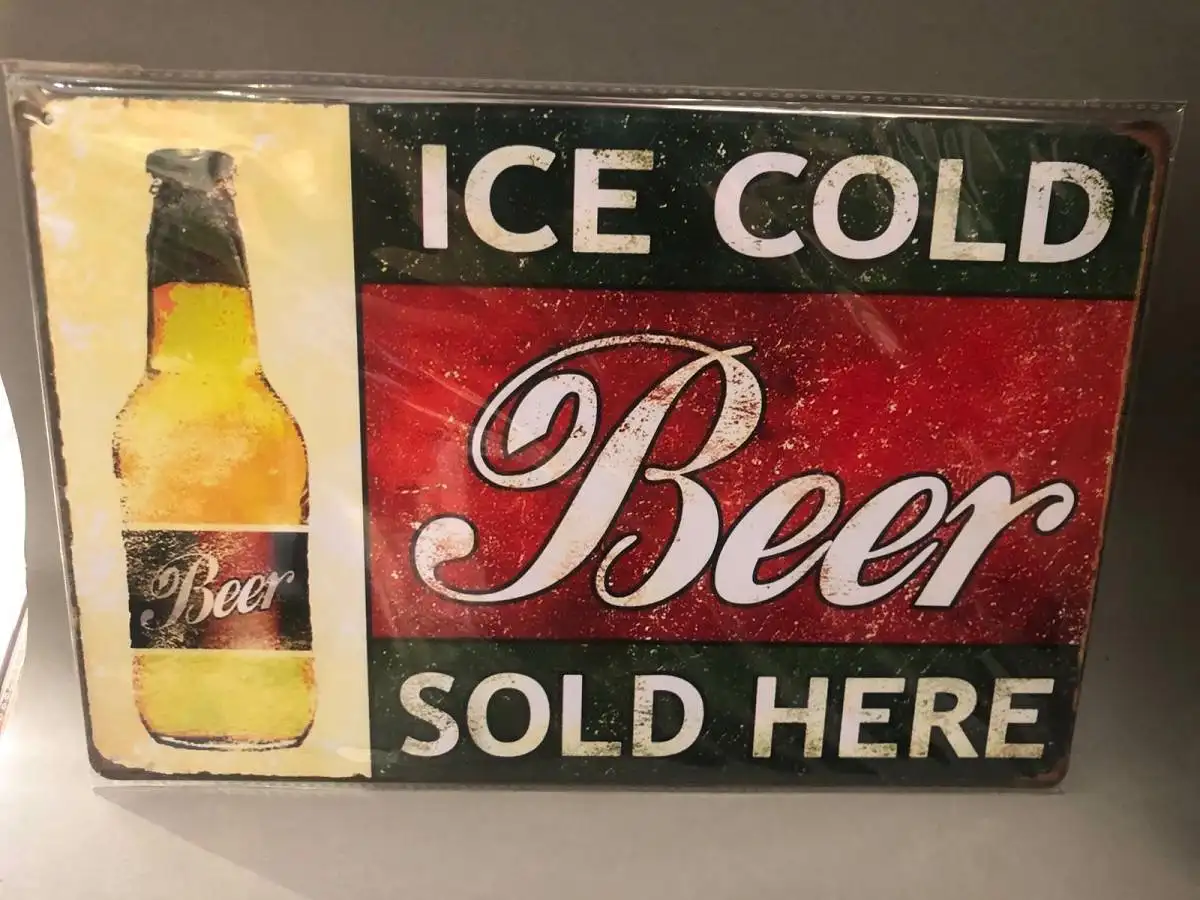Nostalgie Blech Schild Beer Bier ice cold sold here 20 x 30 42015